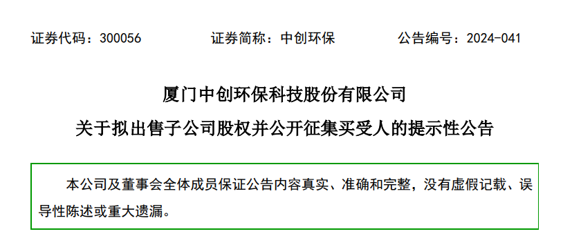 中創(chuàng)環(huán)保發(fā)布公告稱(chēng),為了剝離虧損資產(chǎn),提升公司盈利水平,公司擬籌劃轉(zhuǎn)讓所持有的蘇州中創(chuàng)新材料科技有限公司(簡(jiǎn)稱(chēng)“中創(chuàng)新材”)100%股權(quán)。